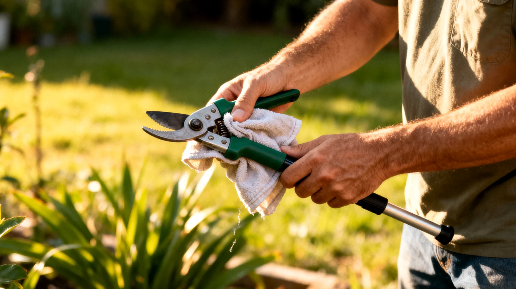 Il primo passaggio chiave è la pulizia delle lame. L’ideale è usare alcol denaturato a 90° o un disinfettante spray con base alcolica. Queste soluzioni rimuovono la linfa, dissolvono le sostanze vegetali resinose e disinfettano la superficie senza bisogno di risciacquare. L’alcol etilico ad alta concentrazione possiede proprietà solventi che lo rendono particolarmente efficace contro le sostanze lipidiche e resinose, oltre a esercitare un’azione antimicrobica ad ampio spettro.