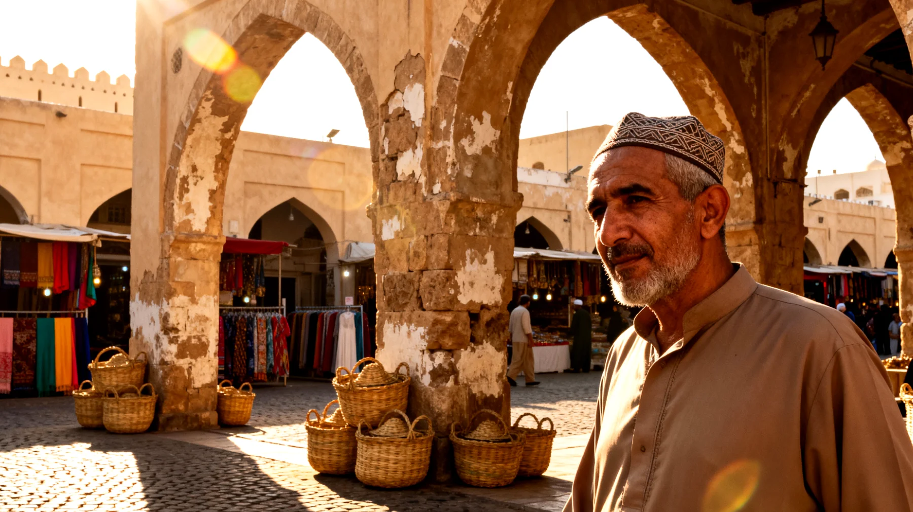 Il Mutrah Souq è probabilmente il mercato coperto più autentico rimasto nella regione. A differenza dei suq trasformati in trappole turistiche, qui i locali continuano a fare la spesa quotidiana tra spezie profumate, tessuti ricamati e l’immancabile incenso omanita. Perdetersi tra i suoi vicoli stretti, dove la luce filtra attraverso le grate lignee del soffitto, significa fare un tuffo in un Medio Oriente che altrove sta scomparendo. I prezzi vanno contrattati con garbo, e potrete portare a casa incenso di qualità a partire da 8-10 euro per confezioni generose.
