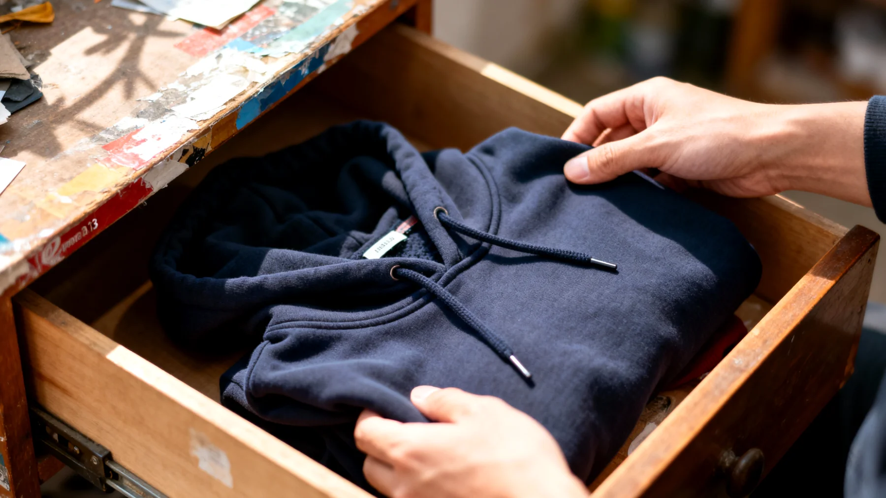 Il motivo principale risiede nella struttura fisica della felpa. A differenza delle t-shirt o dei pantaloni, contiene uno spessore variabile, maniche larghe, cappuccio e spesso elastici su fondo e polsini. Questo design, pensato per il comfort, gioca contro chi cerca efficienza nell’organizzazione.